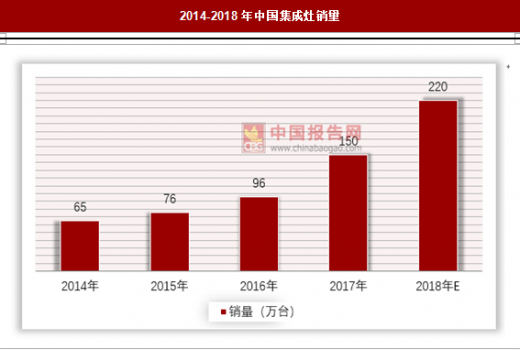 从销量上看,截止2017年我国集成灶销量达到150万台,预计2018年销量将达到220万台。具体如下