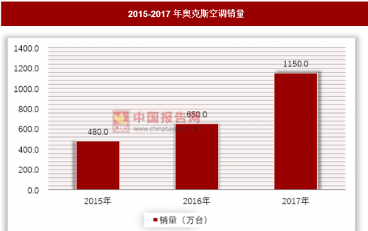 2015年奥克斯空调销量为480万台,2016年增长为650万台,2017年奥克斯空调销量达到1150万台,较2015年增长139%。