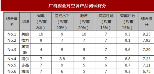 不仅在线上发力,奥克斯在国内空调产品技术和质量上也开始赶超国内其他竞争对手。近日,广东消委会发布一则消息,对一些家电企业的空调产品进行了测试,范围包括省电 、温控、智控、静音、智能等,结果很多品牌指标与大众评价成反差,就像海尔,名气很旺,然而综合得分还不如奥克斯。