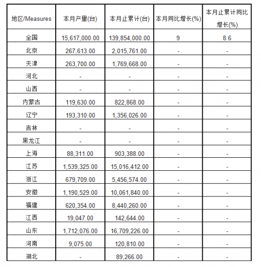 2016年1-10月止累计中国彩色电视机产量139,854,000.00台,同比增长8.6%。