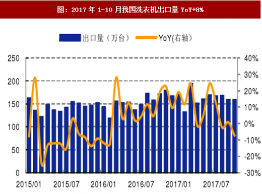 图:2017年1-10月我国洗衣机出口量yoy 8%