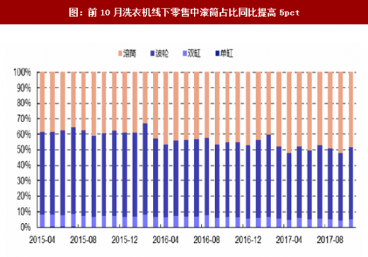 图:前10月洗衣机线下零售中滚筒占比同比提高5pct
