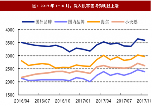图:2017年1-10月,洗衣机零售均价明显上涨