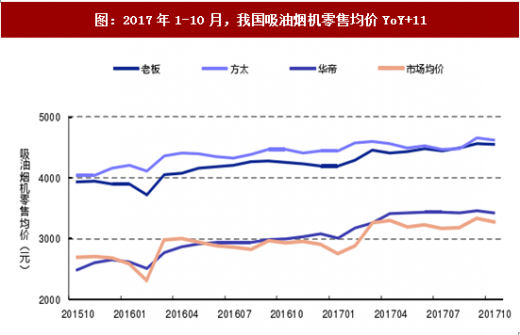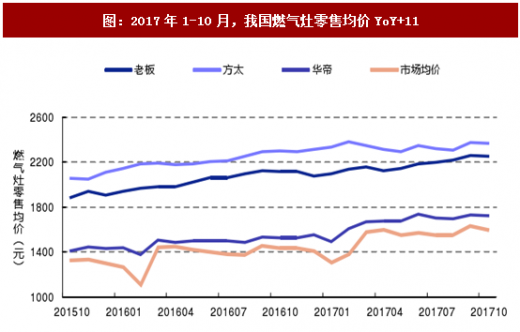 高端新品抬升行业价格,嵌入式产品带来业绩亮点。由于厨电产品结构不断高端化,同时也受到原材料价格上涨的压力影响,烟灶产品均价呈现上行趋势。中怡康数据显示,2017年10月,大风量(17.0立方米/分钟及以上)零售量占比达51.2%,同比提升8.8pct;油烟机均价达3274元,yoy 11.5%。与此同时,老板、方太等厨电企业纷纷布局烤箱、蒸箱等嵌入式产品,积极打开国内新品市场。