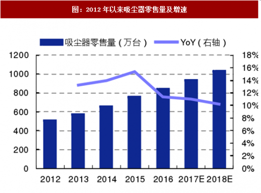 新型小家电快速发展。相对于电饭煲、等传统小家电品类,电烤箱、咖啡机等新型小家电市场普及率较低,行业集中度不高。近年来,随着各企业持续加大广告宣传力度,新型小家电行业快速发展。根据euromonitor预测数据,2017年我国咖啡机零售量将达到22.1万台,yoy 16.2%;电烤箱零售量将达到352.4万台,yoy 15.5%。