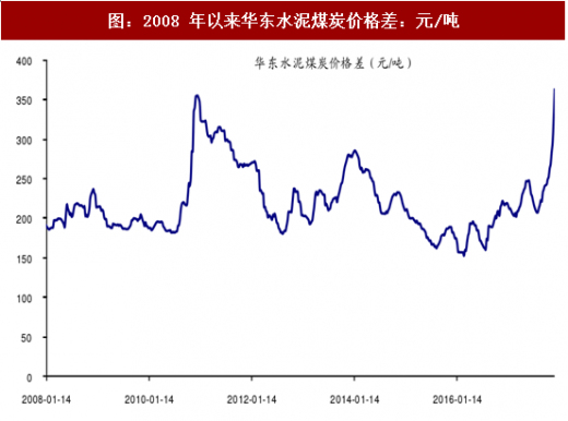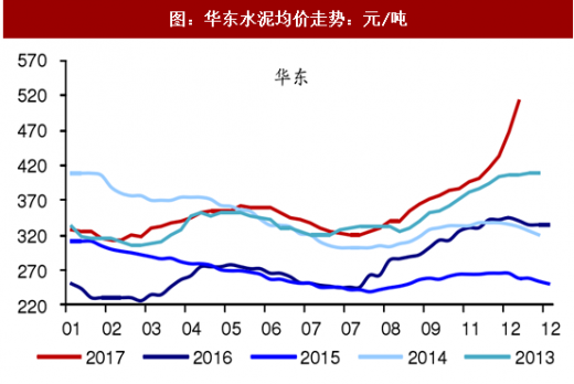 盈利水平持续走高,华东尤为超预期。从水泥价格差指标来看,行业盈利水平持续走高,华东创历史新高。根据数字水泥网,2017 年水泥行业利润将达到 900 亿元,按照全年水泥产量增速-0.5%测算,2017 年水泥吨利润有望达到 38 元,仅次于 2011 年的 49 元。