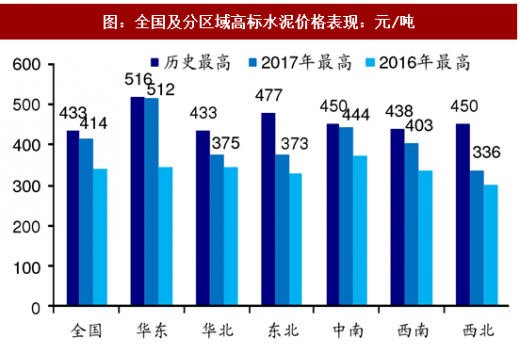 下半年全国各区域水泥价格均有明显抬升,东北、西北地区弹性相对较弱,12 月以来华东、中南高标水泥均价分别约 512 元/吨、444 元/吨,成为全国水泥价格高地,为 2011 年以来最高水平。