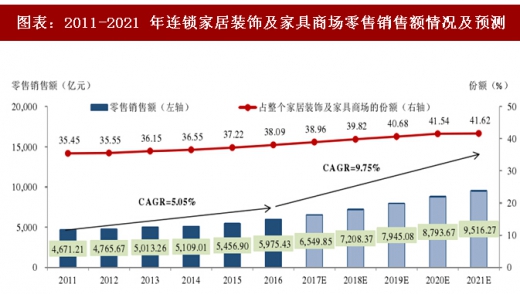 非家居装饰及家具商场通常为小型一站式连锁家居装饰及家具商场,与同行连锁商场相比,缺乏产品类别及消费者的信任。他们通常分布在欠发达的地区市场。预计这些小型非连锁运营商增长速度将更慢,且将会逐渐丧失市场份额,而有关市场份额将转移至大型连锁商场运营商。根据弗若斯特沙利文的统计,2016 年,非连锁家居装饰及家具商场约占整个家居装饰及家具零售市场 37.39%的市场份额,占家居装饰及家具商场 61.91%的市场份额。