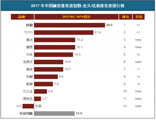 2017年中国顾客推荐度指数-龙头/花洒推荐度排行榜