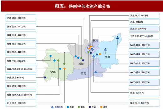 ——冀东2009年收购老牌企业秦岭水泥,在关中市场占据26%市场份额,熟料基地选址铜川、宝鸡、咸阳三地,立足本地市场同时辐射西安。