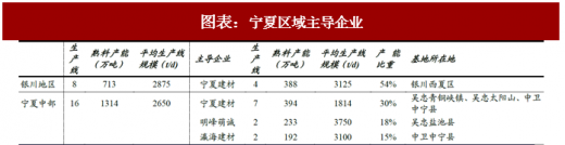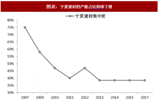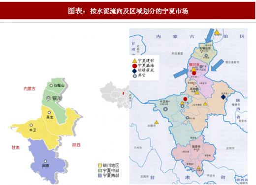 宁夏建材2006年加盟中国建材,是宁夏的主导企业,在全区的比重达39%,广泛布局于宁夏全境,并于周边布点、建立市场防线,有绝对的市场影响力。