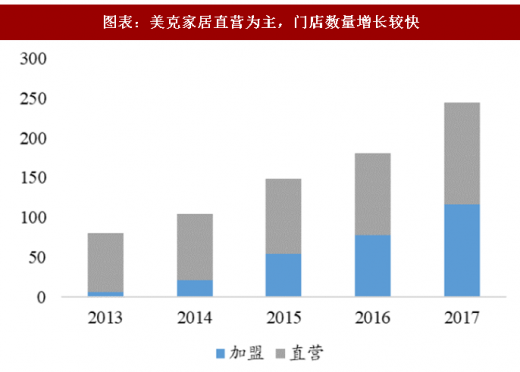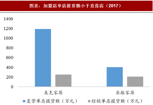 美克家居单店提货额相对较高。通过计算单店销售额分析发现,美克家 居的单店提货额较高,2017 年为 744 万元,而亚振家居和曲美家居的单 店提货额在 240 万元-300 万元之间,并且美克单店提货额 2017 年略微 下降,主要由于其近年来开店速度加快所导致。与此同时,考虑直营店 2 倍的折算系数后,加盟店的单店提货额远小于直营店。
