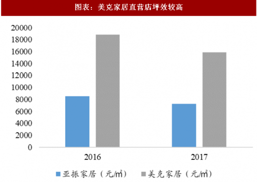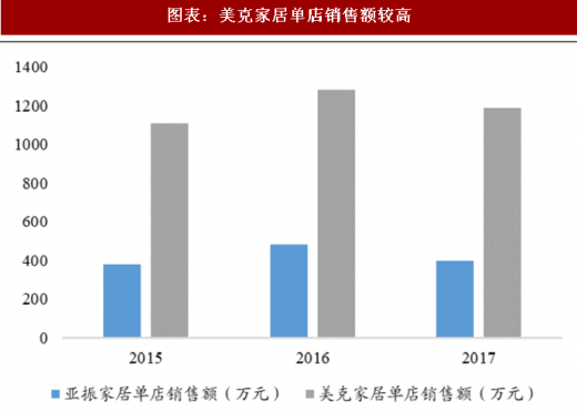 曲美家居大店更多,美克家居自营大店运营存优势。以经营面积超过1000 ㎡作为大店的衡量标准,曲美家居的大店共 212 家,占店面总数的24.23%。但其直营专卖店仅 14 家,因此相当一部分大店为经销商运营。相比之下,美克家居 129 家直营店的平均占地面积为 1847 m2,且自有物业门店全部为大店,加上租赁门店数则至少有 30 家。同时亚振家居也建立了 30 余家独立店,但其单店销售额和坪效相比美克仍有差距。
