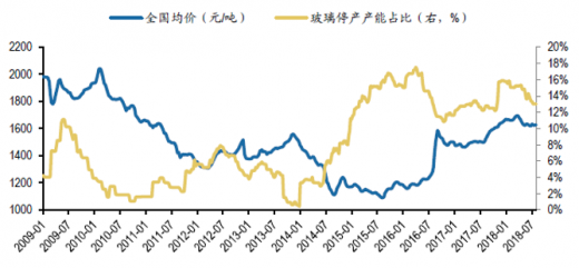 和前几年相比,我国玻璃价格1季度淡季表现良好,但从4月份以来,玻璃价格下跌,使得出现旺季不旺的现象,在6-7月份又持续震荡。由此供给端是玻璃和水泥的差异主要来源,