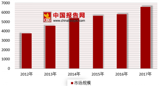 据统计,我国门窗行业市场规模自2012年以来便呈现跳跃式增长,截止到2017年门窗行业市场规模达到6605亿元,主要受益于下游房产和建筑产业的市场向好发展。