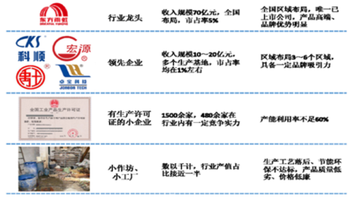 目前,我国防水行业处于一个落后产能严重过剩、产业集中度低、市场竞争不规范的欠成熟阶段,呈现“大行业、小企业”的格局。目前拥有生产许可证的防水材料生产企业1,500余家,无证生产企业众多,未来随着监管措施趋于更加严格,无证及生产低质非标产品的企业生存空间会越来越小,市场竞争环境有望逐步改善。