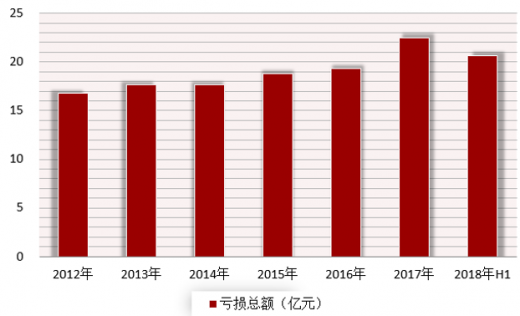 根据数据显示,2017年我国家具制造业规模以上数达到6000家,其中608家企业出现亏损,亏损企业平均亏损金额为370.1万元。2018上半年全国家具制造业企业数量已经增长至6217家,其中亏损958家,亏损面为15.4%,亏损总额达20.6亿元。