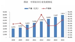 家具行业是我国轻工业重要的细分行业,同时也是我国具有比较优势的产业之一。近年来,我国家具行业发展迅速,并保持了产销两旺的格局,家具行业规模以上企业生产总值由2008年的3,072.8亿元增长到2015年的7,872.5亿元,年复合增长率达到14.38%,远高于同期gdp增速;在下游市场旺盛需求的推动下,近年来行业产销率一直保持在97%以上的较高水平。