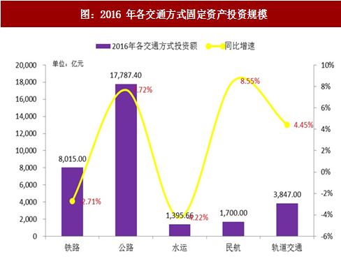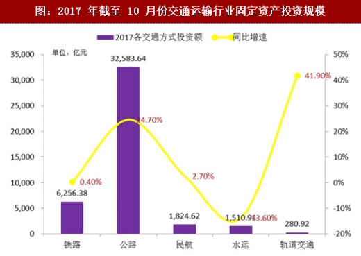 从铁路投资规模来说,2014 年以来,我国铁路投资连续保持在 8000 亿元以上,2015年铁路固定资产投资达到 8238 亿元,2016 年 8015 亿元,2017 年截至 10 月末 6256 亿元,增速有所下滑。