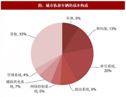 城市轨交固定资产完成一般分为以下几个部分:施工准备、路基工程、轨道工程、电气化工程、信息化工程、车辆购置、其他。每一部分占成本构成比例如下图所示。