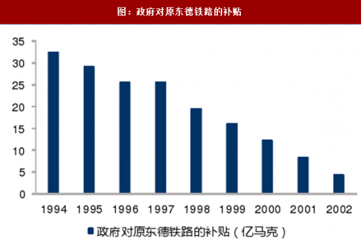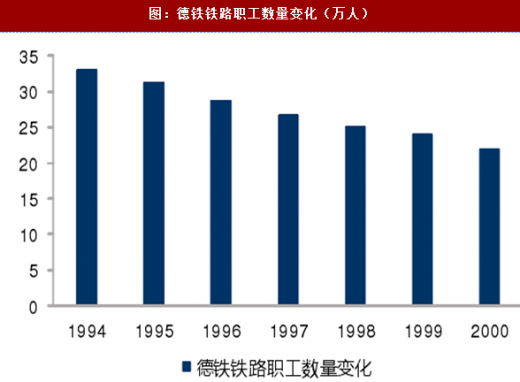 1)职工数的减少,1994年到2000年7年间,德铁职工数量从33.1万人下降到22万人。