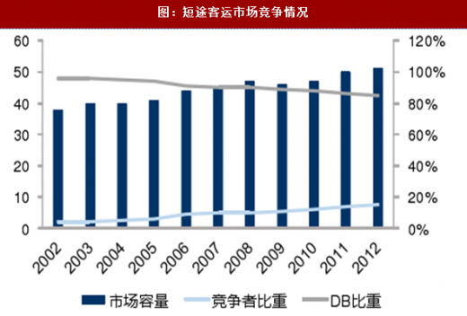 在短途铁路客运市场上,竞争者的市场份额从2002年的4%上升到2012年的15%,而在长途客运服务市场上,db地位稳固,2002年至2010年,竞争者比重一直小于1%,db所占比重高于99%。一方面是因为从事长途运输服务的铁路运营公司数量较少,另一方面长途客运服务利润薄,又需丰富的调度操作、运营管理经验,同时需要与db就路轨、车站等基础设施的使用权展开谈判,所以许多竞争者不愿意涉足这一领域。