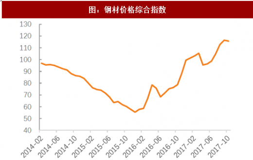 集装箱原材料价格走高。集装箱制造中钢材成本占集装箱成本60-65%。从2016年初以来,钢材价格持续走高,钢材价格指数由55.35低点涨至2017年10月的115.70。
