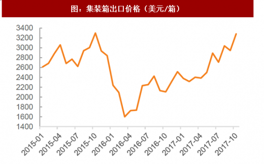 集装箱价格大幅上升。原材料等因素带动集装箱价格上涨,2016年初价格达到低点1600美元/箱,已上涨至2017年10月的3282美元/箱,涨幅已达100%。单箱价格的上涨预期及需求量的上升,导致下游公司购买意愿强烈。集装箱行业属于前三公司垄断行业,前三大公司占市场份额80%,有较强议价能力,制造成本的上涨可以向下游客户转移。