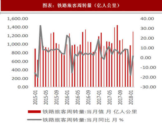 一季度公路完成客运量 55.6亿人,同比增长 0.9%,增速较去年同期放缓0.6 个百分点。其中铁路旅客发送量增长 8.8%,较去年同期加快2.8个百分点。