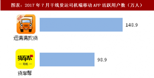干线运输 o2o 重构中国公路物流产业生态。干线物流是利用公路干线进行的长距离、大数量的城际运输。干线运输 o2o 利用移动互联网、等技术,在线上平台完成干线运输的车货匹配,解决货主与车主之间信息不对称的问题。通过互联网撮合“空车”与“货源”,减少货车空驶,大大提高货车司机效益的方式。城际整车公路运输市场集中度较高,运满满、货车帮移动平台用户表现活跃。运满满是国内首家基于云计算、大数据、移动互联网和人工智能技术开发的货运调度平台。目前,平台注册重卡司机 400 余万、货主 100 余万,领跑中国干线运输 o2o 行业,已经成为全球最大整车运力调度平台和最大智慧物流信息平台。2017 年 11 月,运满满与货车帮合并,进一步拉大与罗计找货、福佑好运等同类 app 的差距。