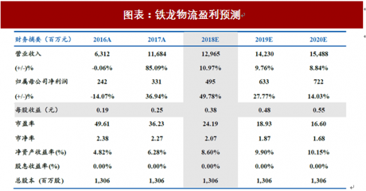 图表:铁龙物流盈利预测