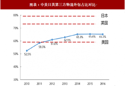 图表:中美日英第三方物流外包占比对比