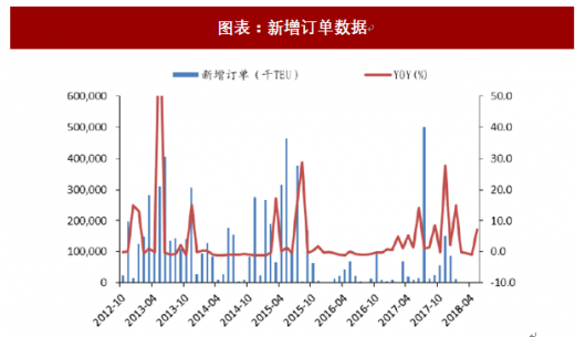 18h1 交船压力大,根据 alphaliner 预测,集运市场 2018/2019 年运力增速分别为 5.8%/3.0%。交付节奏来看 18 年 q1-q4 交付量分别为 47/53/29/16 万 teu,上半年仍有较大的运力投放压力。