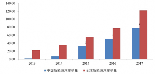根据《国务院印发节能与新能源汽车产业发展规划(2012-2020 年)》,对新能源汽车产业发展目标为:到 2020 年纯电动汽车和插电式混合动力汽车累计产销量超过 500 万辆,按此发展目标计算,2020 年新能源汽车销量有望达到 120 万辆,未来几年中国新能源汽车的市场规模将有望超过 400 万辆,行业发展前景广阔。