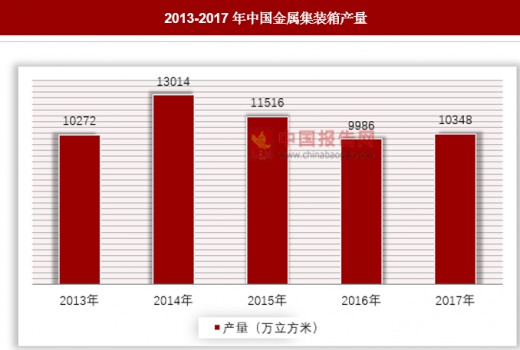 回暖的贸易带动了集装箱行业的发展,2017年1-12月全国金属集装箱产量累计为10348.4万立方米。上下两幅图的对比也可以看出,我国集装箱产量与贸易景气程度呈现正相关关系。