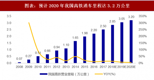 建设与需求相互呼应:铁总工作会议提出 2018 年计划投产高铁 3500 公里。中国铁路总公司工作会议2018年1月2日在北京召开,会议表示2018年将投产新线4000公里,其中高铁 3500 公里,满足高速出行需求。2017 年我国高铁营业里程为 2.5 万公里,按照计划,预计 2018/2019/2020 年我国高铁营业里程将达到 2.85/3.05/3.20 万公里。