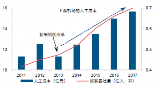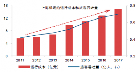 机场的运行成本主要受旅客吞吐量变化影响,而人工成本与业务量具有相关联,但弹性系数比较小,同时薪酬制度的短时变化需要关注。