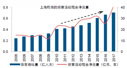 机场业绩稳定,在扩建转固阶段承受压力,在产能利用率提升时期,单客盈利能力的增长,盈利能力不断上升。同时现金流不断增长并呈现加速态势。