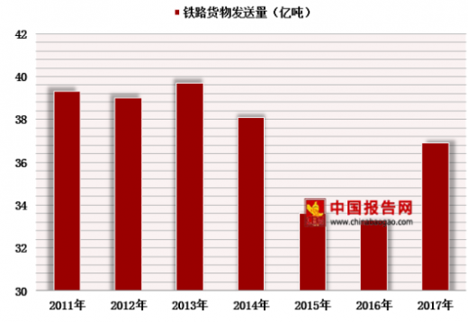 2011-2017年我国铁路货物发送量走势