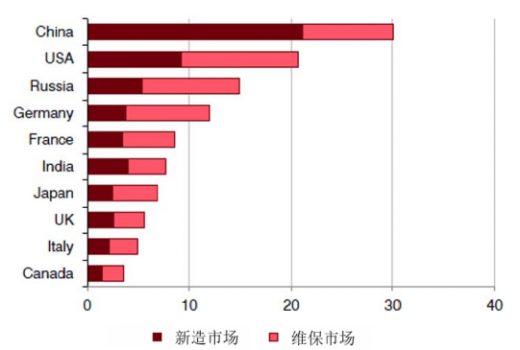 中国是全球最大轨道交通市场之一,世界上众多大型轨道交通企业将我国视为最大的市场之一。2015年,我国售后维保市场比重不足三分之一,美国等国家的售后维保市场比重则远超50%。就目前而言,我国轨道交通新造市场的规模,大于售后维保市场的规模,然而随着存量市场的增加,未来维保市场将持续稳定地增长,该市场也将成为行业发展的主要方向之一。
