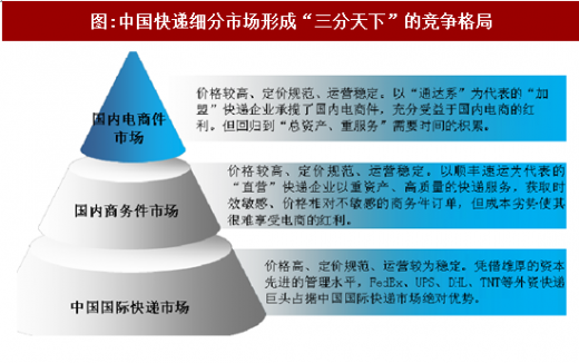 国内商务件市场—以顺丰、ems等直营快递企业为主。