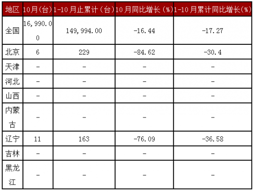 2015年10月中国电动车辆(电动)产量为16,990.00台,同比下降16.44%。2015年1-10月止累计中国电动车辆(电动叉车)产量149,994.00台,同比下降17.27%。