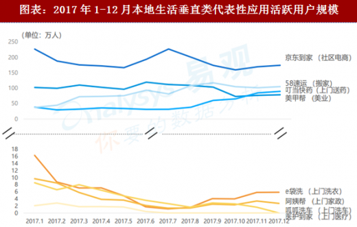 但在验证垂直服务模式的过程中,却也发现了一些尚未满足需求的市场,如社区电商、搬家、乃至上门送药。京东到家的服务全年趋于稳定,以58速运、叮当快药为代表的搬家与上门送药业务下半年活跃用户数持续攀升。