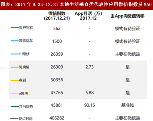 微信指数和app mau均偏低的医护到家、呱呱洗车,模式尚待继续摸索、优化。
