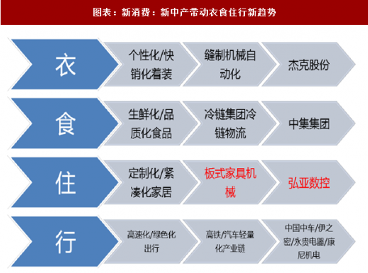 新中产衣食住行要求全面升级:个性化/快销化着装、定制化/紧凑化、化/品质化食品、高速化/绿色化出行