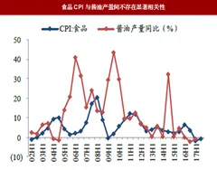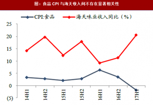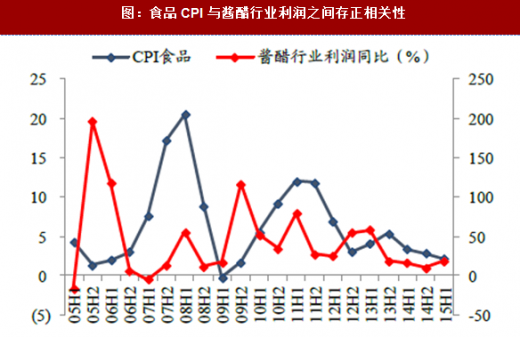 调味品行业产量与食品cpi不存在显著相关性,但收入与之较强正相关。我们认为,产量不显著相关主要原因在于调味品行业投资、生产周期较长(投资2-3年,生产周期至少半年以上),故cpi上行期间产能扩充节奏相对乳制品、肉制品较慢,其产量受cpi影响相对较低。但受益cpi上行,产品终端价提升同时亦加大渠道利润,故行业收入与食品cpi存较强正相关性。调味品行业上游原材料(大豆、糖等)波动较下游消费品售价更小、成本相对稳定,故行业盈利水平与食品cpi间存一定正相关性。