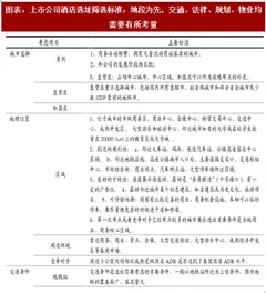 地段是酒店物业选址的首要考虑要素,将直接影响酒店盈利能力。酒店选址通过影响收入端的酒店定价、出租率以及成本端的租金、营运成本等影响酒店的盈利能力,投资回报率。国内酒店主要客源为国内差旅、商务、会务及、休闲,选址需要以便捷、舒适经济为出发点,并考虑长期发展。在选址基础上,交通条件、市政规划、法律风险、条件以及周边酒店分布也是重要参考。