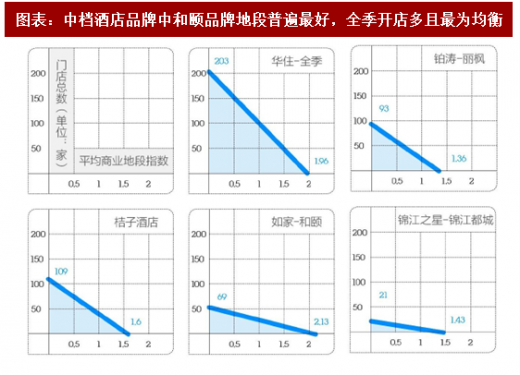 2商业地段指数:每个中档酒店所在地理位置的周边商业资源配置,数字越高,代表这家酒店周边的商业资源越充足,它所在的商圈地段就越好;