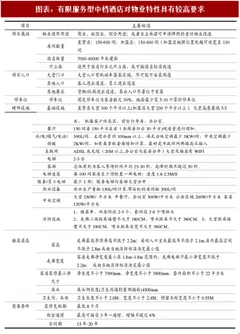 房间结构是酒店对物业特性要求的核心要素。酒店外立面特性、房间结构(包括房间数和房间大小)等因素也是进行酒店物业选择时的重要考虑指标。不同等级酒店对酒店物业具体需求从高星级到底经济型依次降低:一般四、五星级酒店要求房间大小为40-50平米以上,房间数普遍在200间以上;中档酒店房间数一般在30-40平,房间数150-200间;经济型酒店房间大小为20-30平,房间数在100-150间区间。