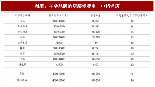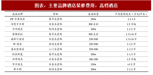 不同物业性质影响改造成本,具体成本与酒店等级有关。物业特性与酒店物业需求的差异程度直接影响酒店改造成本,具体成本与需要改造的酒店等级相关,经济型酒店改造成本在6-7万元/间水平,中档酒店差异较大,改造成本在8-20万区间,高星级酒店装修标准高,平均1.2万起。